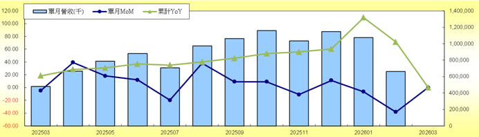 | 月營收 | 單月營收(千) | 累計營收(千) | 單月MoM | 單月YoY | 累計YoY | 累計稅前EPS | 備註 | 近3月營收(千) | 近3月年成長 | |||||||||||||||||