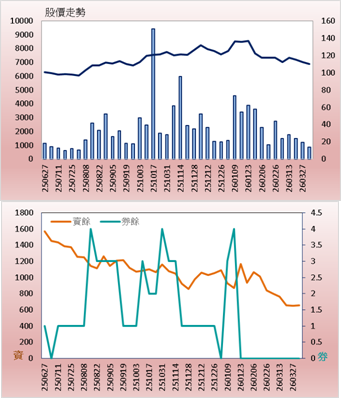 | 2026/4/2 漲跌 | 0.00 | 法人買賣超合計(近一週) | 賣超 -274.64 張 | |||||||||||||||||||||||