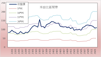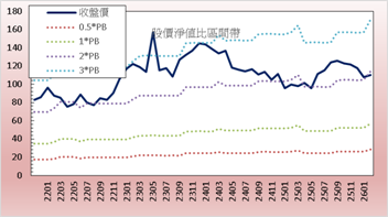 | 股價 | 112.50 | 117.00 | 115.00 | 112.00 | 110.00 | 15*PE | 151.38 | 2*PB | 113.99 | |||||||||||||||||