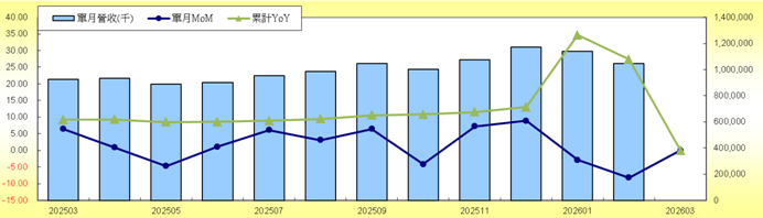 | 202511 | 1,076,451 | 10,431,024 | 7.23 | 18.05 | 11.53 | 創歷史新高 | 3,127,580 | 16.78 | ||||||||||||||||||
