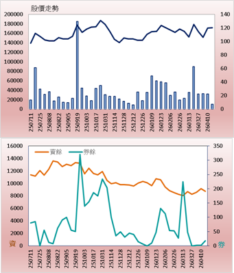 | 2026/4/13 股價 | 120.00 | 法人買賣超合計(近一日) | 買超 983.176 張 | |||||||||||||||||||||||