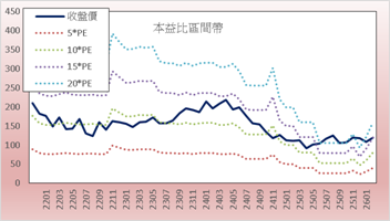 | 股價 | 125.00 | 114.50 | 106.00 | 119.50 | 120.00 | 15*PE | 120.00 | 2*PB | 153.85 | |||||||||||||||||