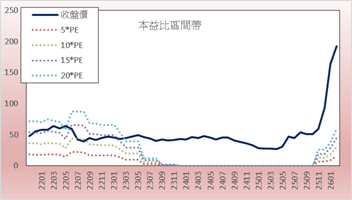 | 股價 | 111.00 | 136.00 | 190.00 | 184.00 | 192.50 | 15*PE | 44.77 | 2*PB | 49.61 | |||||||||||||||||