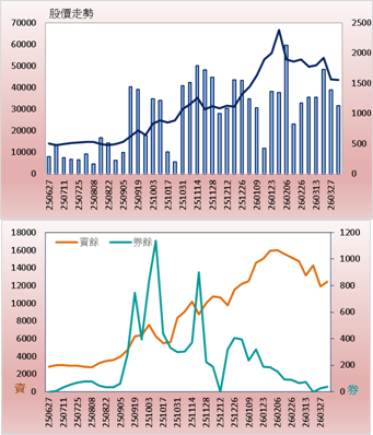 | 2026/4/2 漲跌幅 | -5.76 | 法人買賣超合計(近一月) | 賣超 -2552.11 張 | |||||||||||||||||||||||