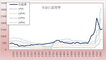| 股價 | 1,770.00 | 1,800.00 | 1,915.00 | 1,565.00 | 1,555.00 | 15*PE | 2,286.76 | 2*PB | 552.40 | |||||||||||||||||