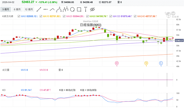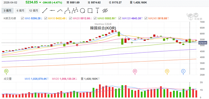 亞洲股市漲跌互見,在國際地緣變數未明朗前,各國股市皆呈現「防禦與題材並重、靜待不確定性消除」的觀望格局。日經225指數上漲290.2點,收53413.7點,南韓綜指上漲73點,收5450.3點,上證指數下跌39.2點,收3880.1點。